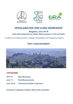 Rencontre internationale concernant la mesure du radon (IRSOIL), du 16 au 19 juin à Bergamo (Italie).